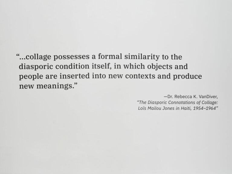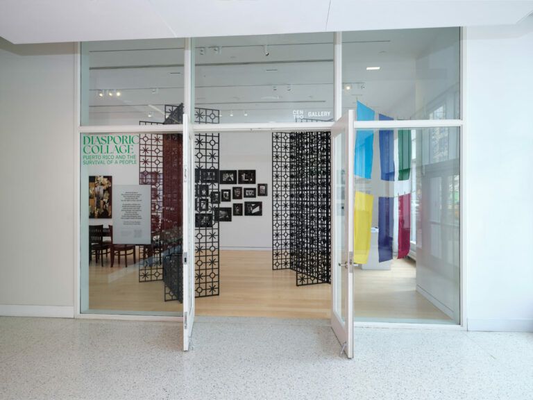 Diasporic Collage: Puerto Rico and the Survival of a People honors Puerto Rican identities in the archipelago and its diasporas. Puerto Rico’s colonial status and geographical location situate it as a locus of global encounters and ongoing displacement. As such, the Puerto Rican diaspora can be understood as a collage of overlapping histories of colonialism, resistance, and survival. This exhibition engages with collage as both practice and metaphor. A collage is an assemblage, an art technique that uses discrete materials, images, or text to create a whole picture. Countering the concept of a melting pot, which emphasizes assimilation and loss of culture, the idea of a collaged community allows for the celebration of roots and relations.